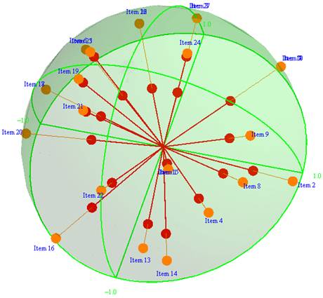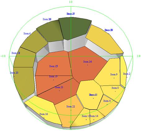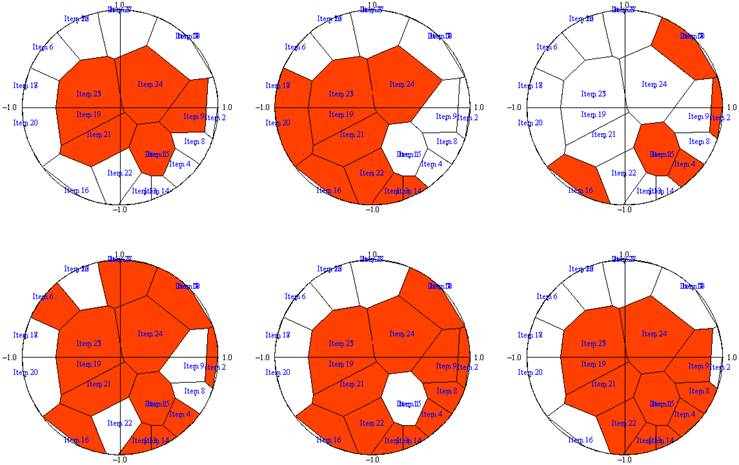 response rate are placed closer to the center of the circle, and items with a