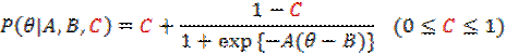 logistic (3PL) model is a dichotomous IRT model in which a lower asymptote parameter (C) is added to the 2PL model.