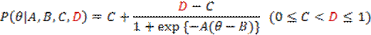 logistic (4PL) model is a dichotomous IRT model in which an upper asymptote parameter (D) is added to the 3PL model.