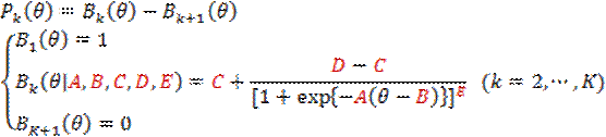 it represents the probability of selecting category k or higher. The ICRF can be selected from the 2- to 5-parameter