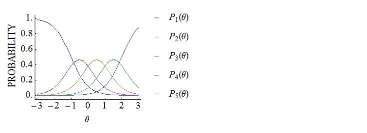 The probability that an examinee with ability θ correctly answers an item is expressed as