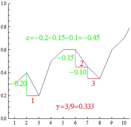 adjoining pairs out of nine, so gamma is calculated to be 0.333 (=3/9). Index c